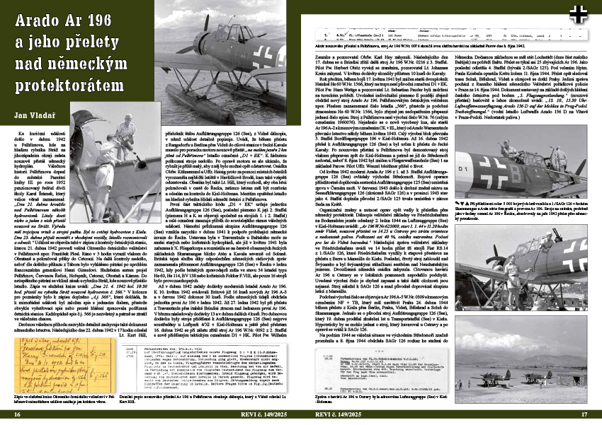 16 Arado Ar 196 a jeho prelety nad nemeckým protektorátem, autor Jan Vladar